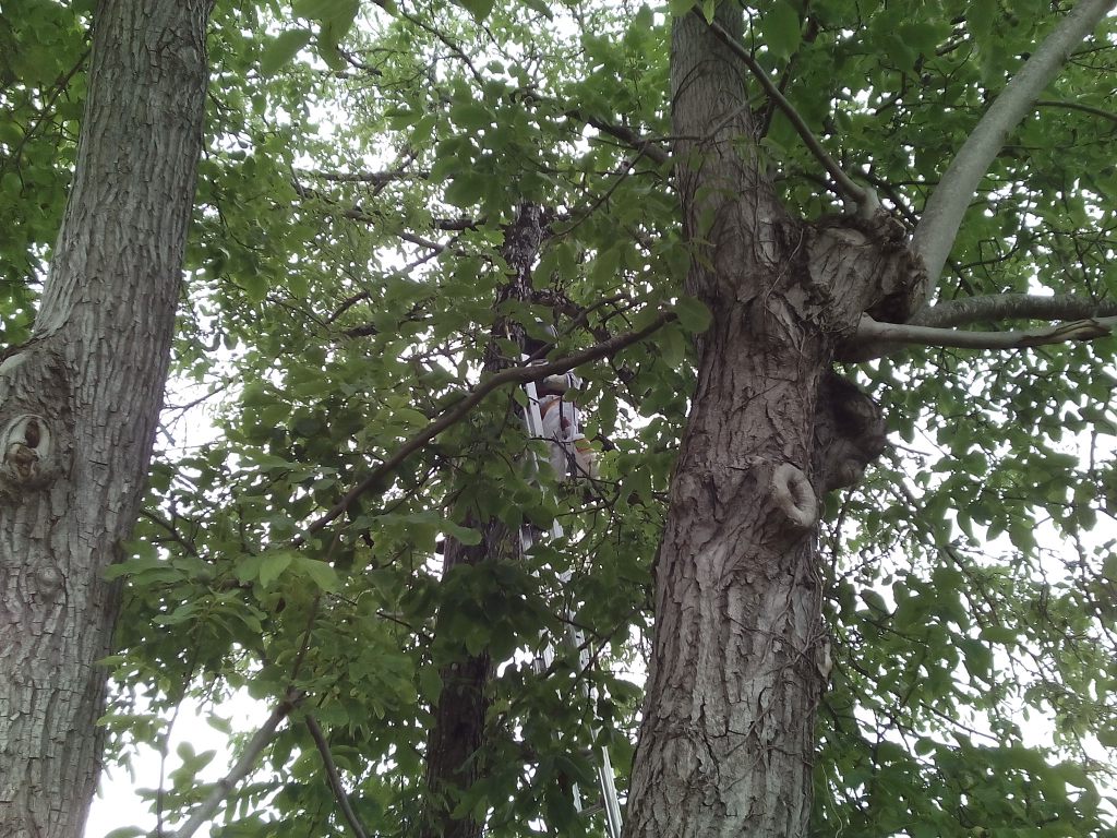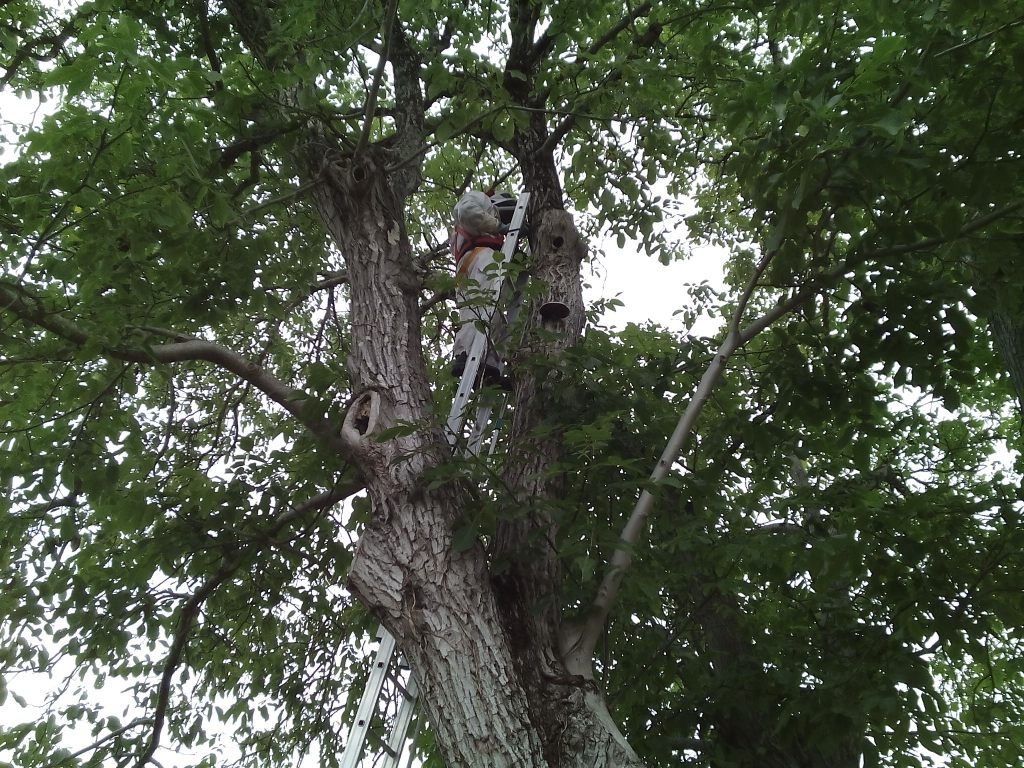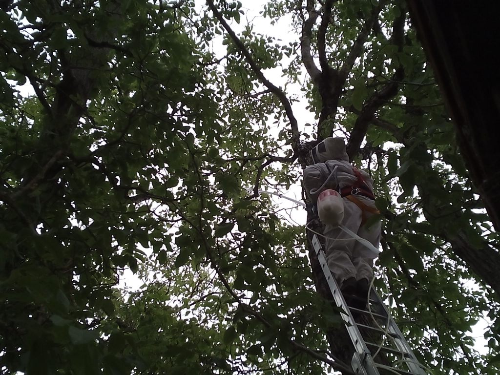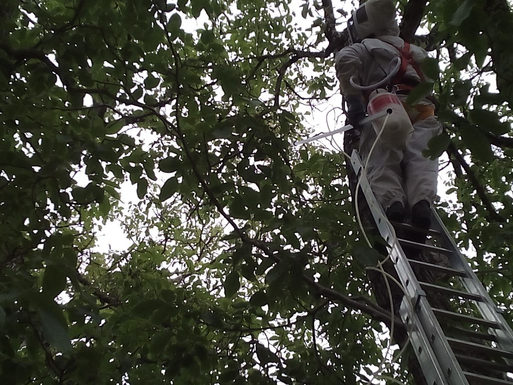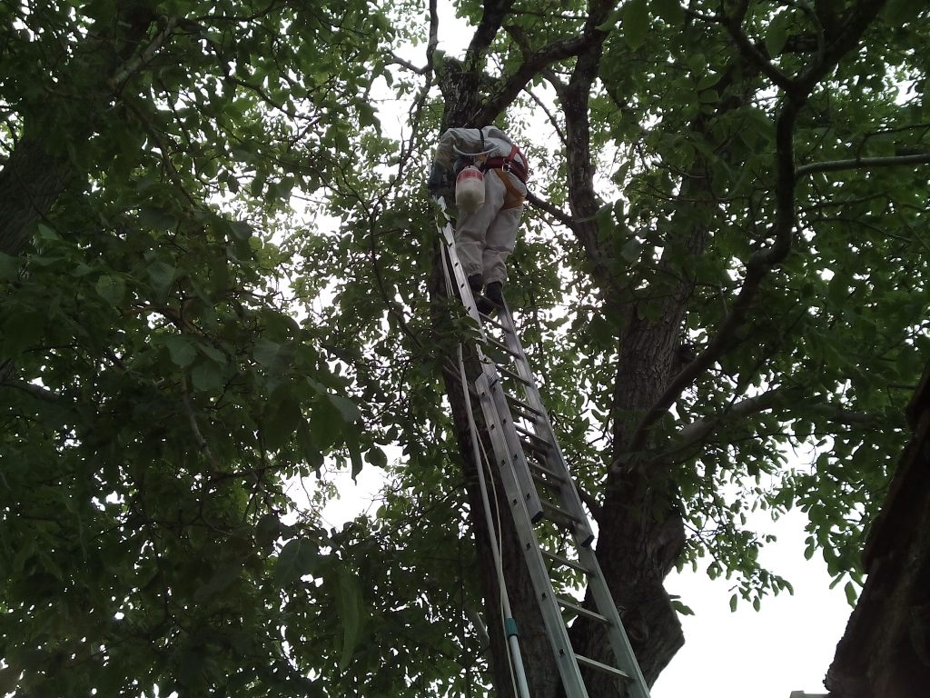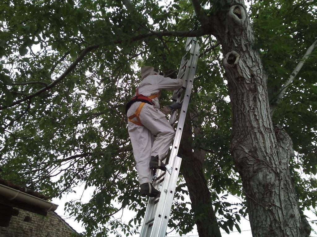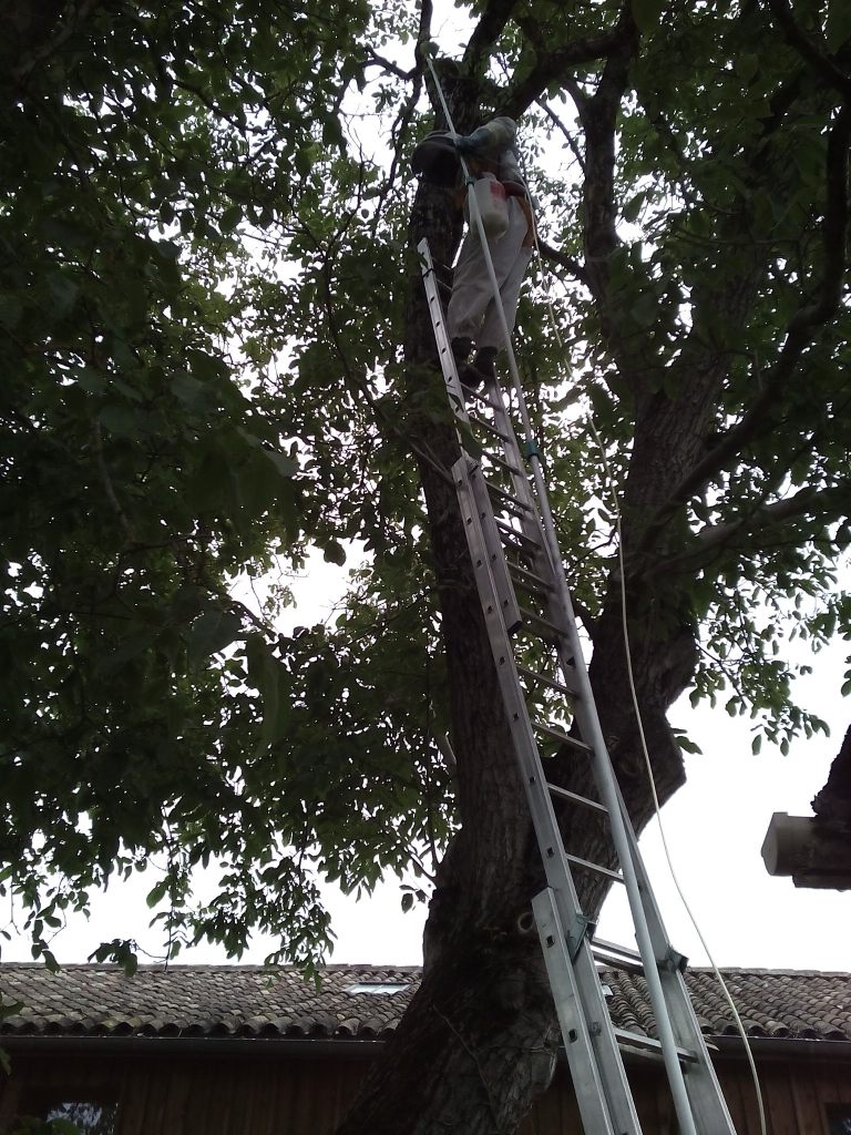 Une intervention à Saint-Macaire sur un nid de frelons asiatiques en escalade à 15-20 mètres de haut.
